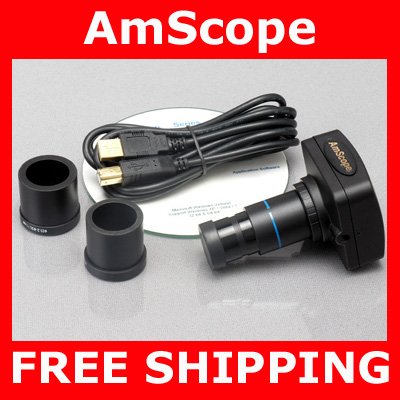 The NEWEST GENERATION of Microscope cameras!!! Our latest generation of MU cameras features upgraded electronics, streamlined software, and a compact design with smaller dimensions and reduced weight. Our company is located in the USA and all cameras come with a 1-YEAR WARRANTY! Featuring built-in C-mount compatibility and 23mm reduction lens adapter, our camera can be attached to any instrument with a C-mount or a 23mm photo port, including microscopes, telescopes, endoscopes, and etc. The camera's optics offers 2592x1944 pixel resolution, and the included software allows you to capture real-time, high-definition videos and stills without requiring any additional equipment. The included user-friendly software allows you to make notes, shapes, watermarks, and measurements with ease. You can analyze, present, and share images of samples and specimen by simply plugging one end into your PC's USB 2.0 port, and the other on your microscope's eye-tube or trinocular port. In addition, the newest generation of MU camera comes with a preassembled 0.5X reduction lens, giving your PC screen the same field of view as your microscope's eyepiece. With the reduction lens in place, your camera tube is 23mm in diameter, making it compatible with pretty much any microscope's eyetube or trinocular port! We also include 2 eyepiece adapters for FREE - 30.0mm and 30.5mm. With its unique stand alone design, the MU series camera is equipped with CMOS color sensor, and comes with a high-speed USB 2.0 cord, advanced software (Windows XP/Vista/7 compatible), 4 mounting sizes (23mm, 30mm, 30.5mm, and C-mount), and instructions. We are based in the USA and all our cameras come with a 1-year full-coverage warranty and a life-time of free software upgrades. Retail value of the microscope camera is 0.