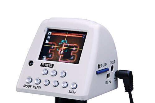World's first digital color camera for microscopy and video inspection applications with a built in 2" LCD screen and instant image capture feature with the built in SD card. TV out allows the connection of an external LCD monitor for detailed viewing. Wireless and wired USB shutter control. Many stand alone features on camera. It can be used with any microscope or video lens with a C-Mount. Accessories included are USB shutter cable, USB cable, TV-out cable, SD card, remote, power supply, image capture software. 28 fps frame rate at TV/PC out, jpeg picture format, MPEG4 video format, pictbridge and DPOF printer support, DC 12 V, 1.5 A power supply.